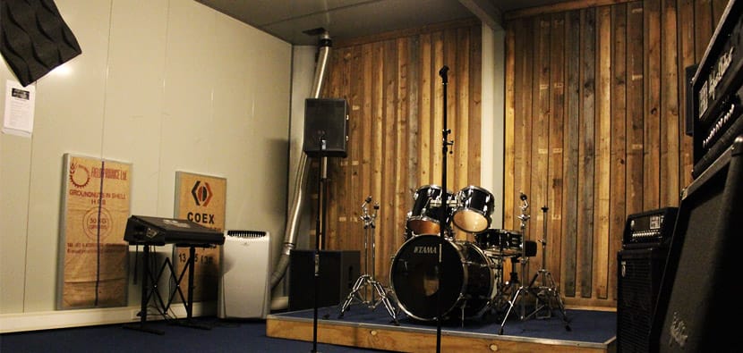 The Box heeft 6 airconditioned oefenruimtes met een gedegen basisset en aanpasbare akoestiek