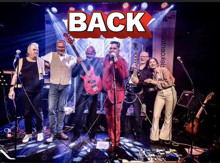 Is dé 80’s rock & new wave cover-band die je moet gaan zien! BACK speelt de eighties covers die iedereen kent maar niet altijd voor de hand liggen. Bowie, U2 en Simple Minds natuurlijk, maar ook Herman Brood, Duncan Brown, Killing Joke en Prince. Heel herkenbaar, maar altijd met een BACK-twist! Wie zijn BACK? Frank is een echte ras-entertainer, de stuwende ritmesectie Robin en Tommie zorgt er in no time voor dat de voetjes van de vloer gaan, gitarist Andy Leibbrand weet elke noot feilloos te raken en Dirk voorziet alles van een heerlijk eighties synthesizer sausje.